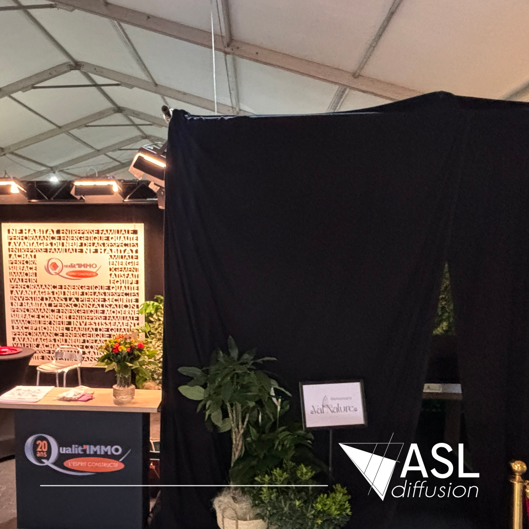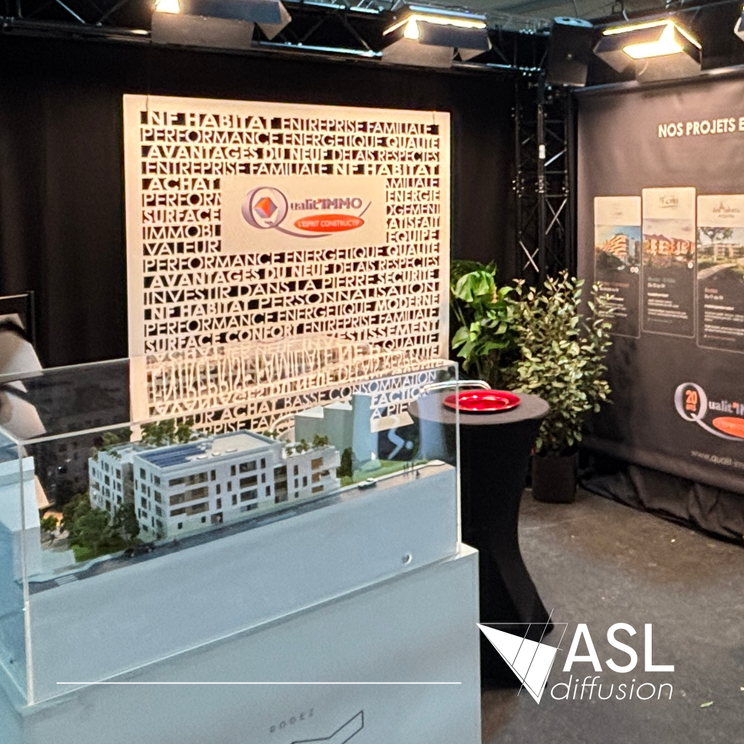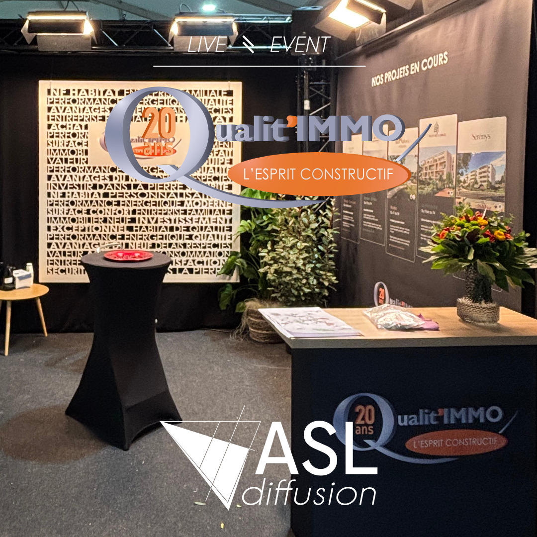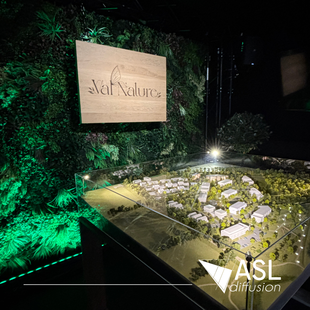ASL Diffusion a conçu et monté un stand sur mesure pour Qualit’IMMO, autour d’une immersion complète dans le projet #ValNature